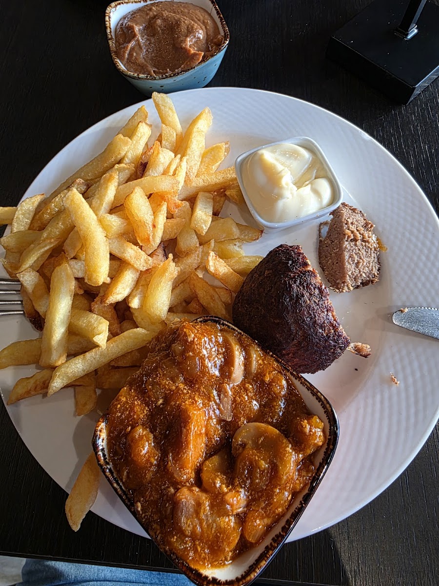 The atmosphere in Happy Frites is warm and inviting, with a modern yet casual design that makes it perfect for a quick meal or a cozy gathering. The staff, known for their friendly demeanor and efficient service, create an experience that's both relaxing and satisfying. As noted by customer Marc Racker, the service here is not just friendly; it’s impressively quick, ensuring that you’re never left waiting long for your tasty treats.